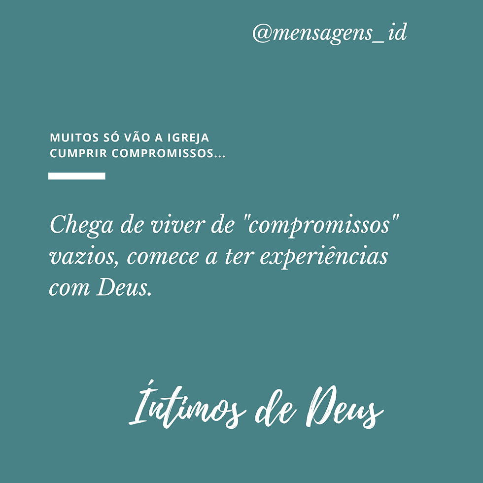 Está na hora de se aproximar mais de Deus, parar de viver apenas de compromissos vazios... Mais buscar uma INTIMIDADE com o Espírito Santo 🔥.. Adquirir experiências próprias!